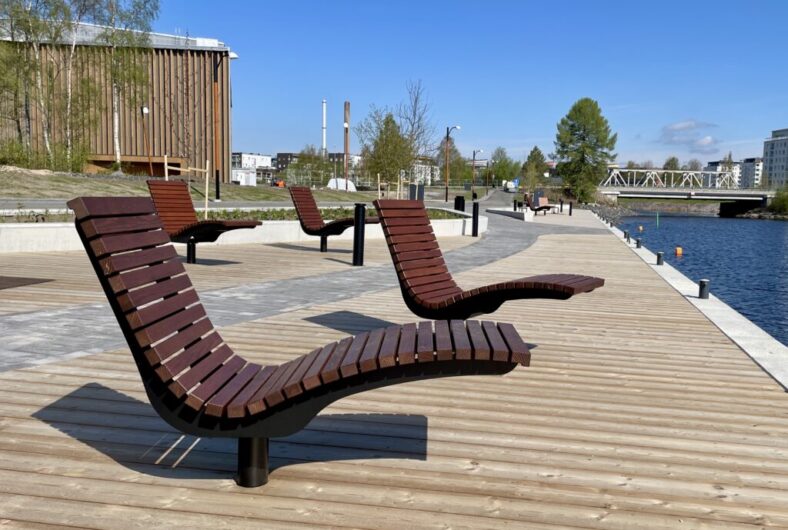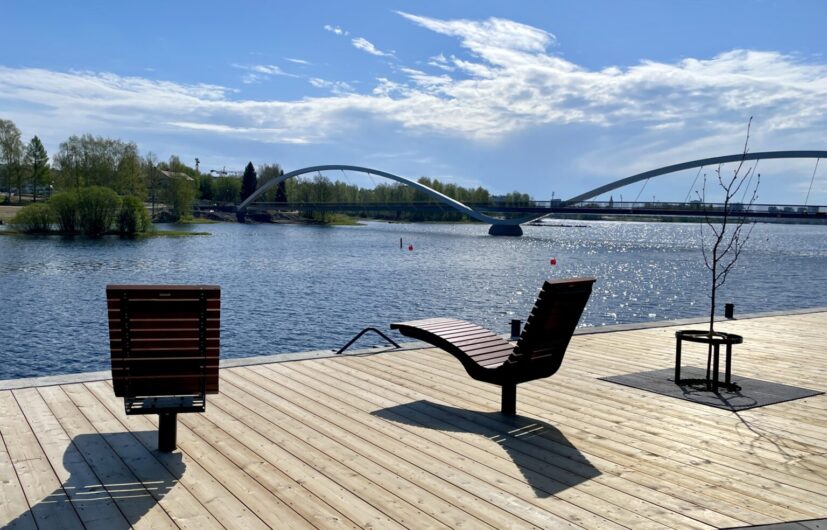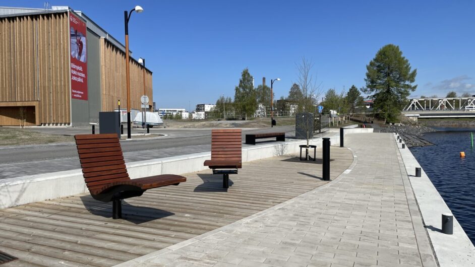 Alueella järjestetään asuntomessut kesällä 2025. Toimitimme rantabulevardille Nusser Dessau penkkejä ja Nusser Silencio lepotuoleja. Molemmissa on jykevä teräsrunko ja puuosat voidaan valita joko FSC-kovapuusta tai Douglaskuusesta valmistettuina.