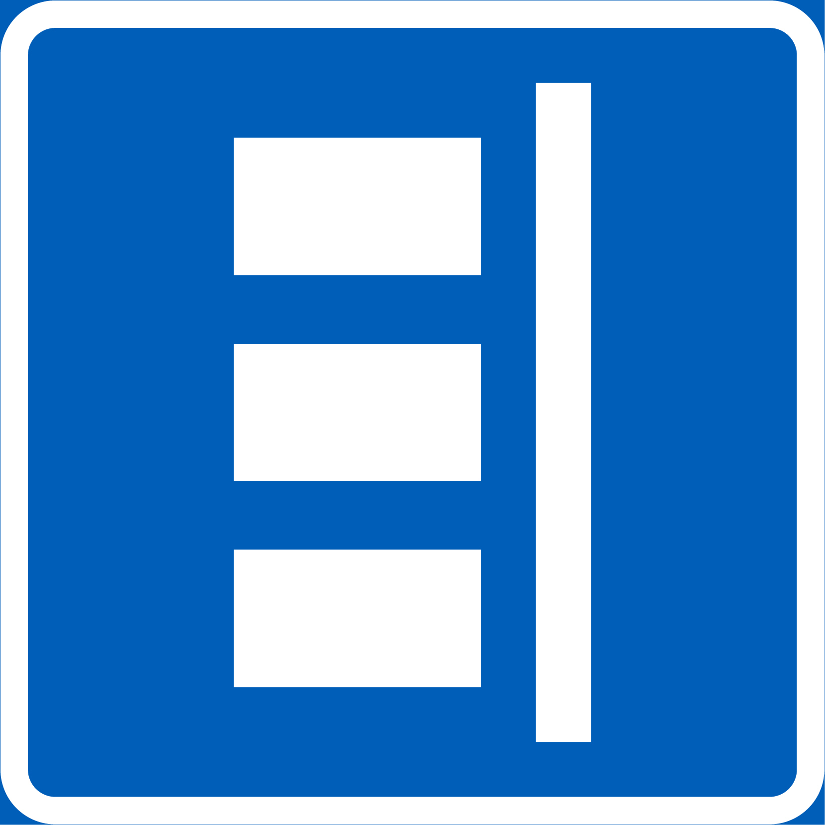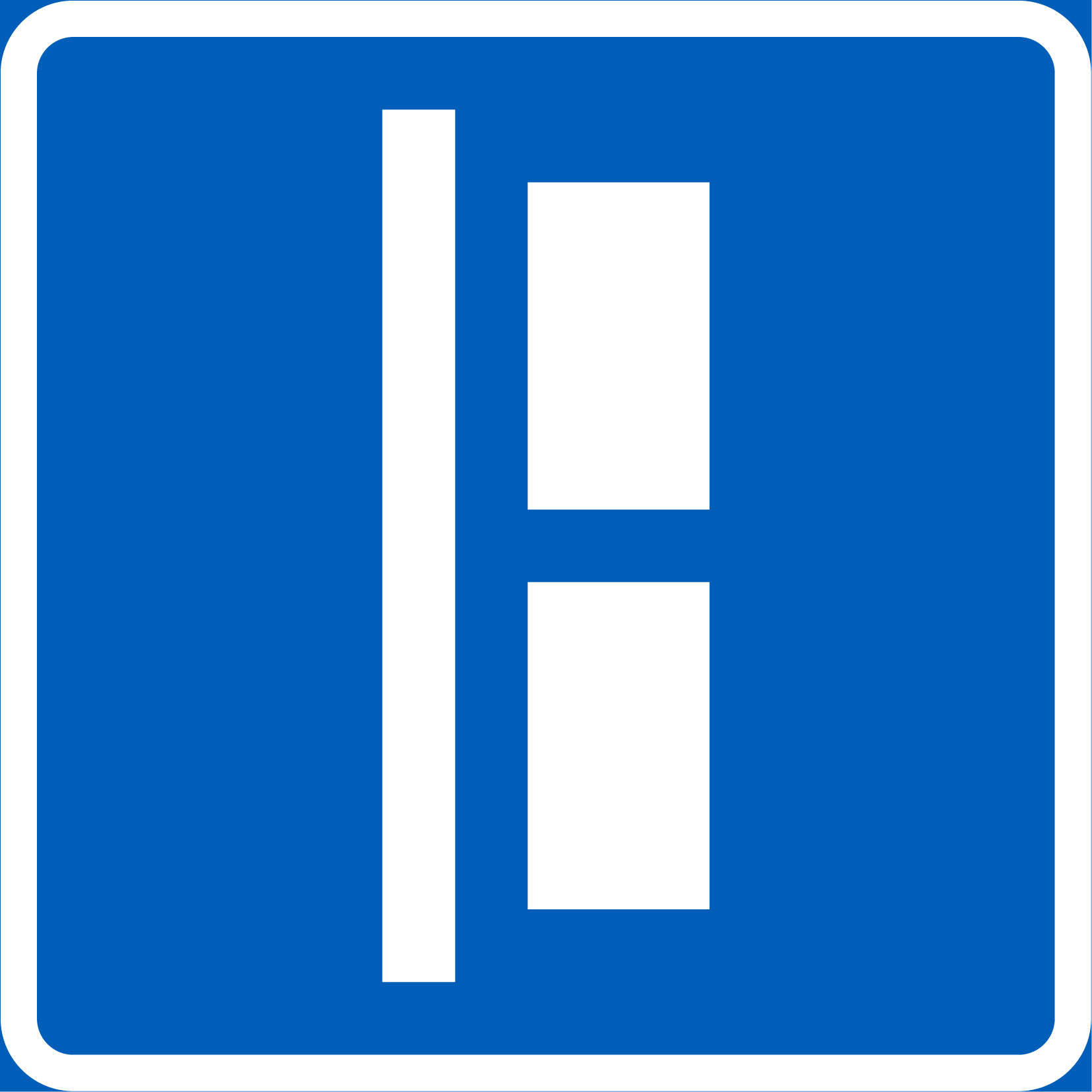 E4.1 ajoneuvon sijoitus pysäköintipaikalla on alumiininen CE-hyväksytty sääntömerkki R1 tai R2 kalvolla. Liikennemerkki  on sinivalkoinen ja kooltaan 600×600 mm.