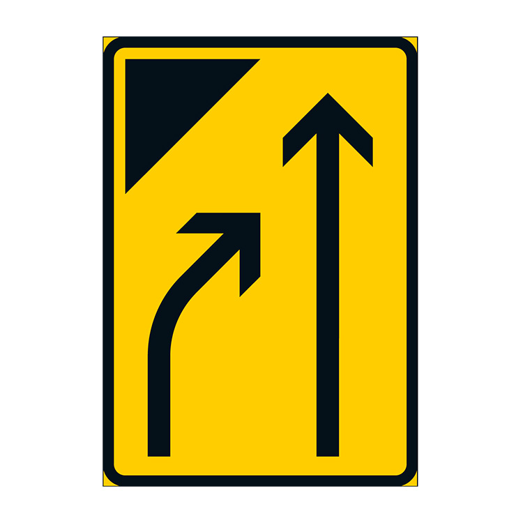 F8.1.3 Ajokaistan päättyminen on työnaikainen muovinen liikennemerkki R3FL päiväloistekalvolla. Liikennemerkki F8.1.3 ilmoittaa ajokaistan päättymisestä. Merkki on keltamusta ja kooltaan 840×1200 mm.