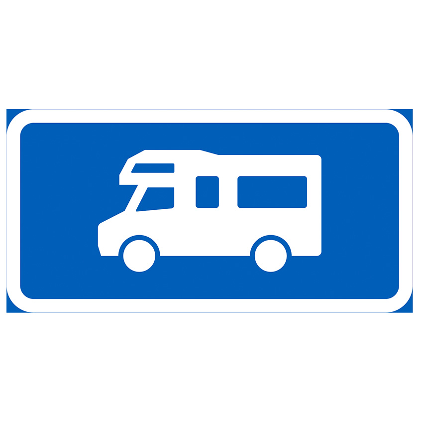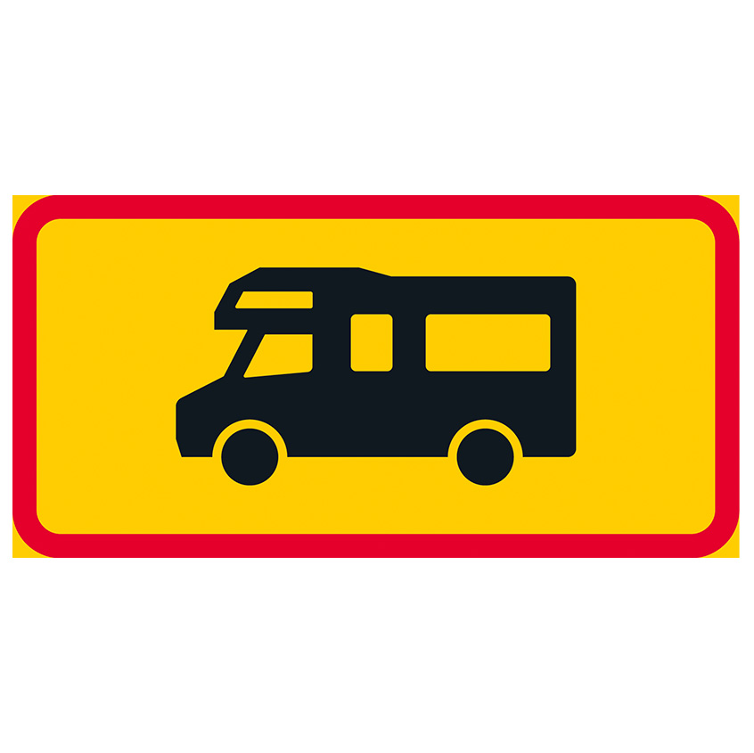 CE-hyväksytty lisäkilpi H12.6 matkailuauto. Liikennemerkki on alumiininen, joko R1 tai R2 kalvolla. Merkki on punakeltainen tai sinivalkoinen ja kooltaan 400×200 mm tai 600×300 mm.