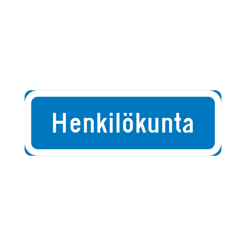 CE-hyväksytty lisäkilpi H24 ”Henkilökunta”. Liikennemerkki on alumiininen, R1 kalvolla. Merkki on sinivalkoinen ja kooltaan 600×200 mm.