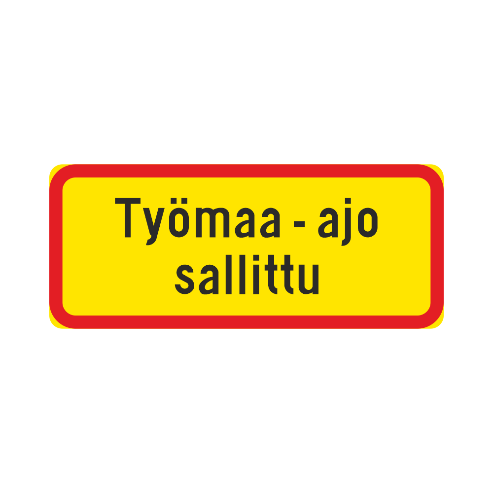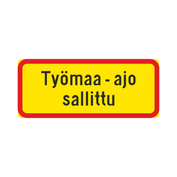 LM H24 Tekstillinen lisäkilpi – ”Työmaa-ajo sallittu” (Muovi, 600×250, R3FL Päiväloiste, PK, )