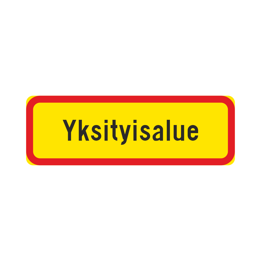 CE-hyväksytty lisäkilpi H24 ”Yksityisalue”. Liikennemerkki on alumiininen, R1 kalvolla. Merkki on punakeltainen ja kooltaan 600×200 mm.