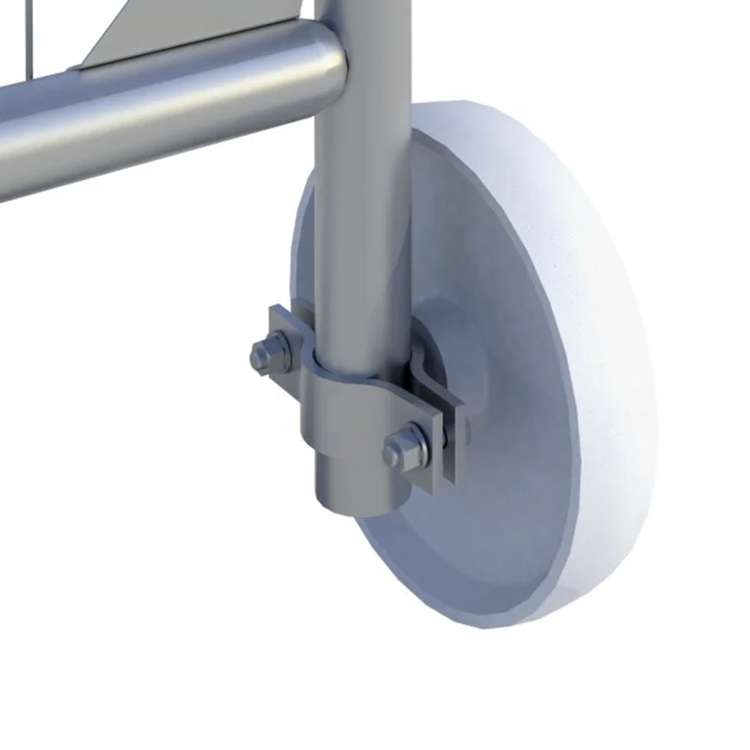 RAKE porttielementin pyörä helpottaa porttina toimivan RAKE-aidan liikuttelua. Porttipyörä kiinnitetään porttina toimivan aitaelementin tukipylvään jalkaosaan vakiona olevan kiinnikkeen avulla.