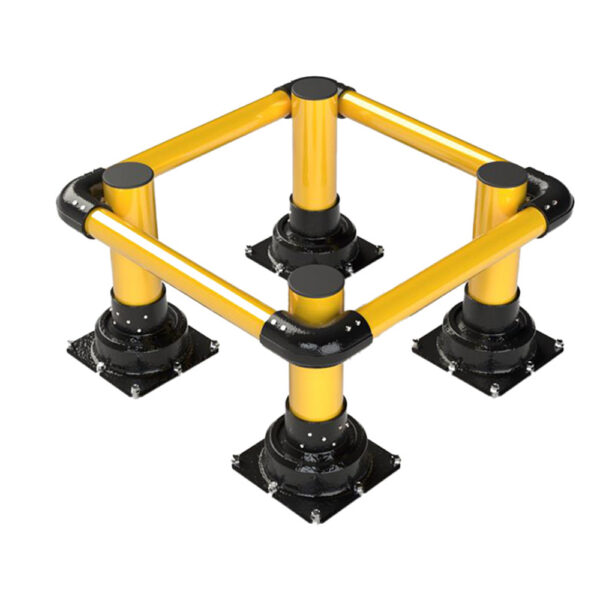 SlowStop IronFlex pylvässuoja koostuu neljästä type 3 pollarista, neljästä L kulmapalasta sekä neljästä vaakaputkesta.